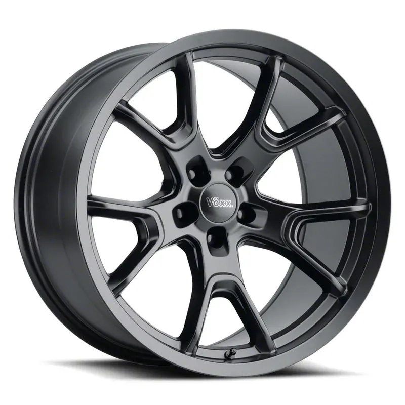 Voxx Replica 50th Anniversary Style Matte Black Wheel; Rear Only; 20×10.5 exudes a sleek aesthetic appeal, complementing a range of vehicle styles. Its dark stainless finish emanates sophistication, while the brand reputation of Voxx Replica ensures robustness. This wheel seamlessly merges elegance with durability.