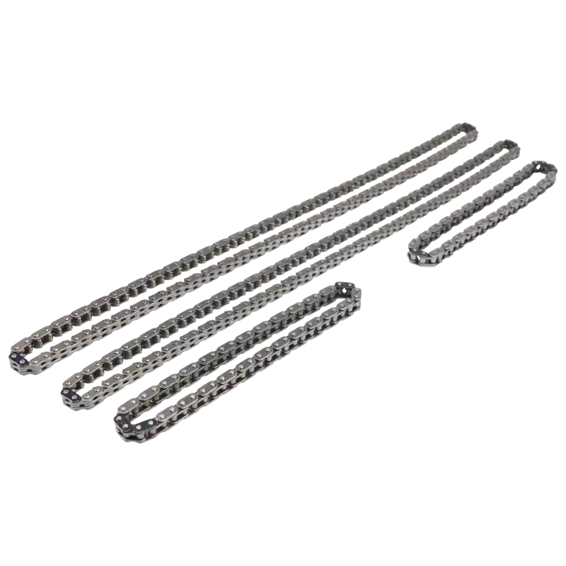 The COMP Cams Hi-Tech Timing Chain Sets for Ford Coyote engines are designed to withstand the stresses of upgraded, modified applications and are the perfect choice when replacing fatigued, worn out factory chains. Any time the cams are being upgraded in a Ford Coyote engine, or it is being built for high RPM racing use, replacing the tired, stock timing chains is a must. The new COMP Cams Hi-Tech Ford Coyote Timing Chain Sets feature heavy-duty secondary chains with 15% thicker plates than the factory chains, which helps to prevent common secondary chain failure. These kits also include premium quality primary chains that are ideal for any high performance or racing application. Whether simply upgrading camshafts or doing a full race engine build, these timing chain sets provide the durability needed in aggressive racing environments. Sets include two primary and two secondary chains.